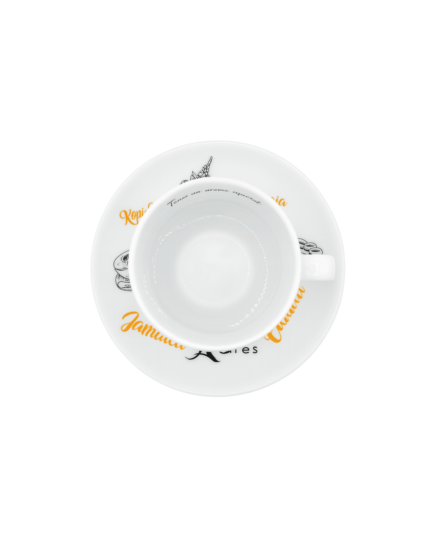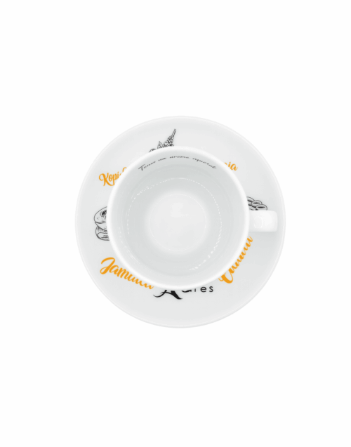 Fabricada en porcelana de alta calidad, mantiene el calor de tus bebidas y realza el sabor en cada sorbo. Su diseño moderno, con ilustraciones inspiradas en el universo del café y las infusiones, aporta un aire auténtico y elegante.
