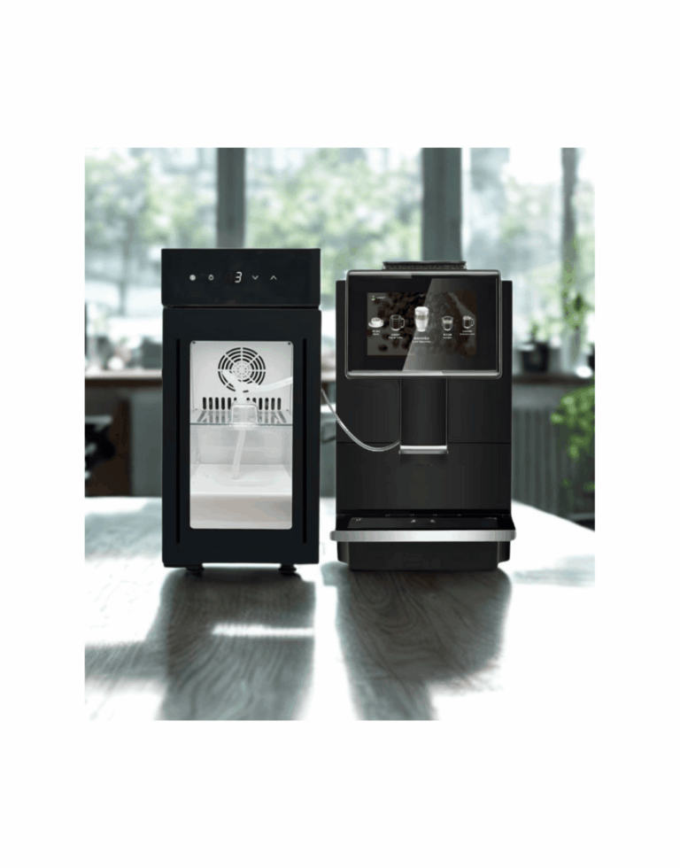La combinación de la nueva Saeco Aurora M2 con Milk Cooler ofrece una experiencia completa de café profesional en cualquier entorno.