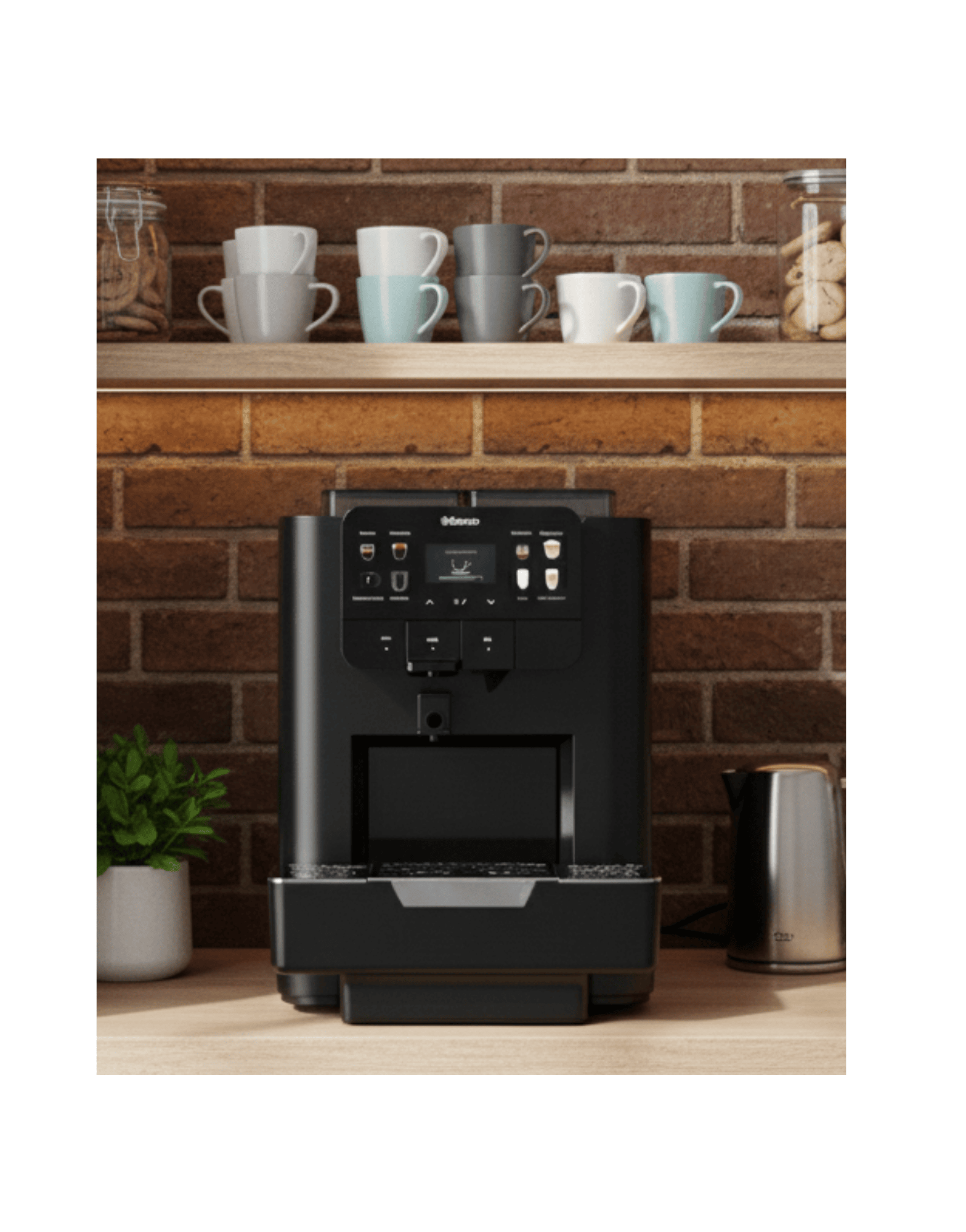 • Diseñada para entornos profesionales: Compacta, elegante y versátil, con regulación de altura de erogación en tres niveles, reposatazas integrado y capacidad para un uso medio de hasta 40 tazas diarias.