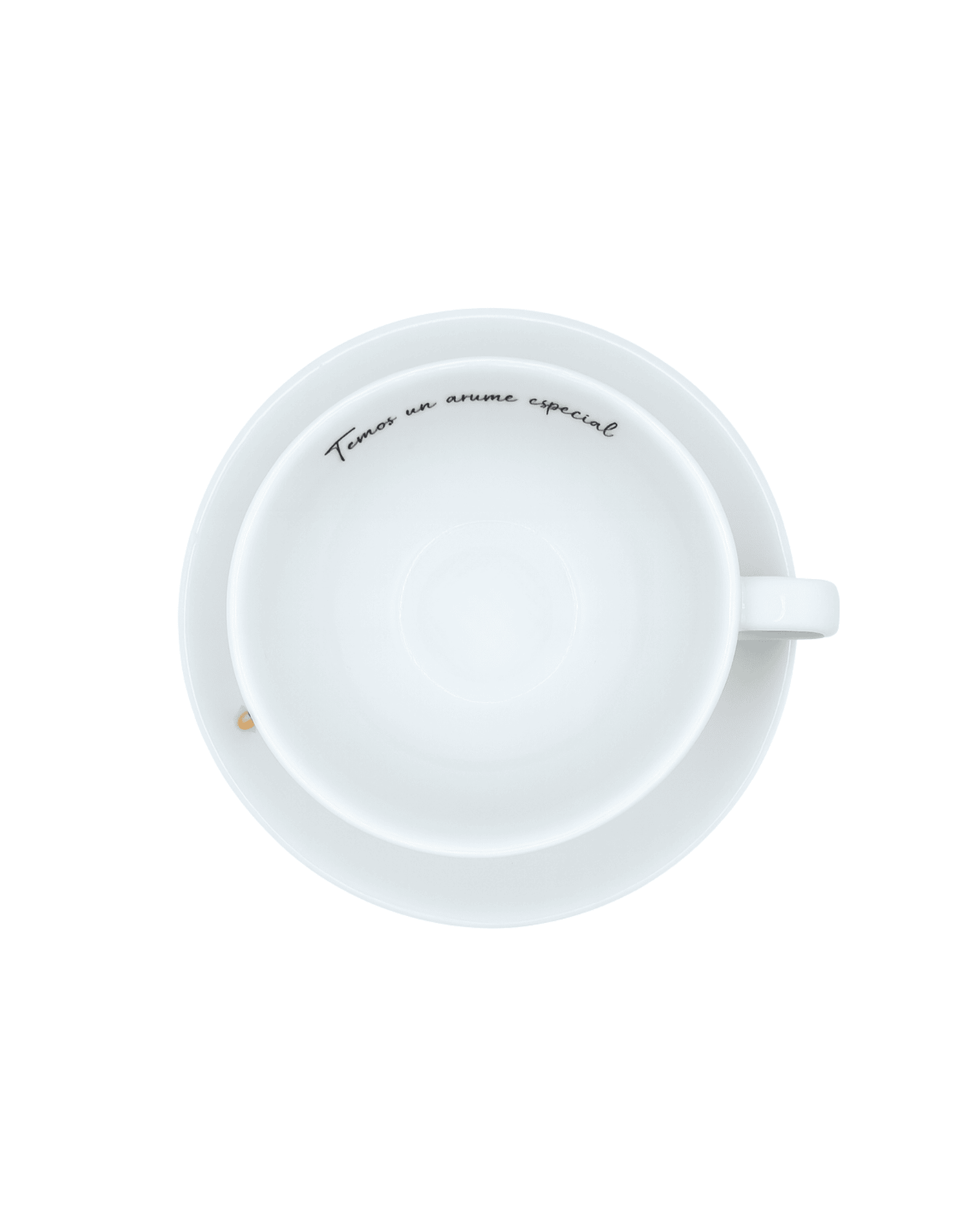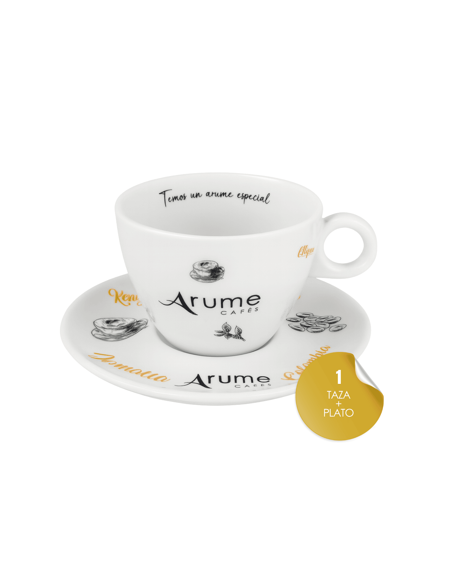 Con un diseño cuidado que mezcla ilustraciones cafeteras y el logotipo Arume Cafés, esta pieza transmite calidez y profesionalidad. El mensaje interior “Temos un arume especial” convierte cada sorbo en una experiencia única.